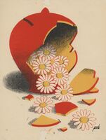 DE INCLUSERO A MILLONARIO. En el centro de esta composición firmada se destaca una hucha rota con sus pedazos desordenados y de la que salen flores.Prueba de imprenta. Ilustración realizada para la revista semanal de Novelas y Cuentos. Titulo: De inclusero a millonario. Autor: Víctor Cherbuliez. Nº publicado: 954. Fecha: 21-08-1949. Tomo NC. 17.