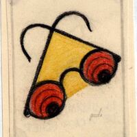 En este dibujo enmarcado en donde se aprecia el boceto de la firma del pintor unas gafas negras con ojos negros y rojos son el tema central. Entre las patillas entrelazadas de las gafas se ha creado un espacio de color amarillo.Boceto realizado para la ilustración de la revista semanal Novelas y Cuentos. Titulo: El hundimiento de la casa usher. Autor: Edgar A. Poe. Nº publicado: 1114. Fecha: 14-09-1952. Tomo NC.: 32.
