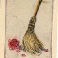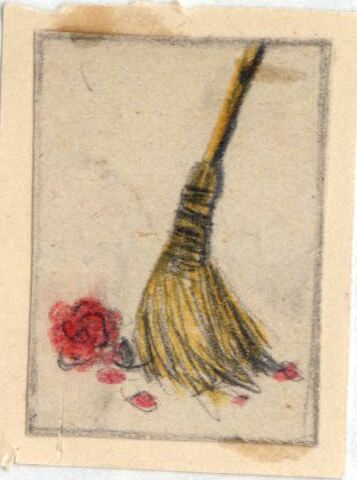 Una escoba de pelos amarillos barre una rosa roja en el suelo. La sensación que da el dibujo es que, con el tiempo, hasta la rosa –representante de la belleza- acabo tirada por los suelos. El dibujo se encuentra enmarcado.Boceto realizado para la ilustración de la revista semanal Novelas y Cuentos. Titulo: Autor: Nº publicado: Fecha: Tomo NC.