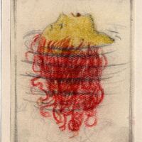 De las aguas surge una cabeza de mujer en posición de perfil. Su rostro es amarillo y su cabellera suelta y ondulada es de color rojo como el fuego. La mujer cierra los ojos mientras que abre su boca de rojos labios. El dibujo está enmarcado.Boceto realizado para la ilustración de la revista semanal Novelas y Cuentos. Titulo: Tenía que suceder. Autor: Enrique Larreta. Nº publicado: 1227. Fecha: 14-11-1954. Tomo NC. 28