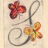 En el dibujo enmarcado donde se vislumbra el boceto de la firma del pintor revolotean dos mariposas alrededor de una “s” muy estilizada y caligráfica de color negro. Las mariposas son pequeñas y de color amarillo y rojizo, respectivamente.Boceto realizado para la ilustración de la revista semanal Novelas y Cuentos. Titulo: Salvadora Olbera. Autor: Azorin. Nº publicado: 997. Fecha: 18-06-1950. Tomo NC. 26.