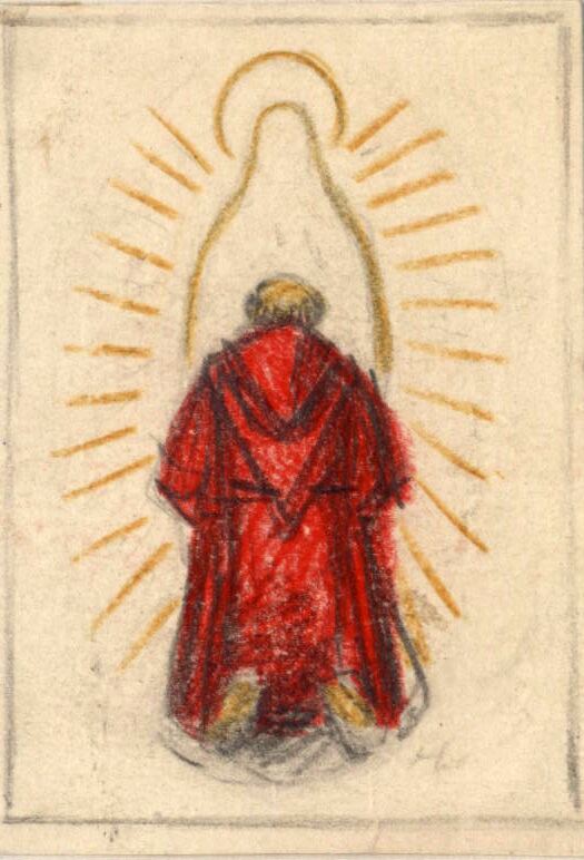 - Boceto realizado para la ilustración de la revista Novelas y Cuentos. Titulo: El Monje Blanco. Autor: Eduardo Marquina. Nº public.: 1192. Fecha: 10-03-1954. Tomo NC.: 44 PI/. 175