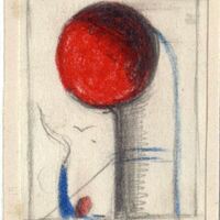 En este dibujo enmarcado se representa la figura de una chimenea de un barco, de grandes dimensiones, blanca con su orificio rojo. En tamaño más pequeño, desde el puerto, un hombre de traje azul con un pañuelo blanco se despide del barco pronto a lanzarse al mar.Boceto realizado para la ilustración de la reista semanal Novelas y Cuentos. Titulo: Partir. Autor: Roland Dorgeles. Nº public.: 1293. Fecha: 19-02-1956. Tomo NC.: 46. PI/. 493