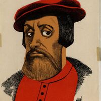 Un personaje de mirada desconfiada, con un sombrero rojo sobre su cabeza y una espesa barba castaña se representa en este retrato firmado. En su traje destaca el color rojo. De la figura solamente se realiza su busto.Prueba de imprenta. Ilustración realizada para la revista semanal de Novelas y Cuentos. Titulo: Autor: Nº publicado: Fecha: Tomo NC.