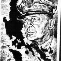 - En primer término el retrato del Comandante Mcarthur, quien estuvo al frente de la contienda en las Islas Filipinas durante la Segunda Guerra Mundial. El cartel tiene claros tintes épico-políticos.