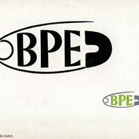 - Sobre un fondo blanco y bajo el lema de “seguridad” se han dibujado dos alfileres abiertos con las letras en su interior de “BPE”. El alfiler y las letras de la derecha algo más grandes que el de la izquierda son de color negro mientras que el segundo es gris con letras verdes. El soporte es rectangular.
