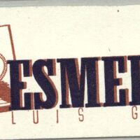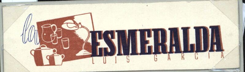 - Cartel con grandes letras donde se lee Esmeralda, Luis García, junto a un bodegón compuesto por un flexo, una jarra unos vasos y unos cachorros.