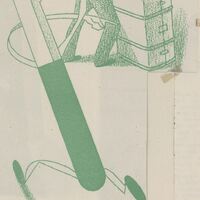 - Dibujo a lápiz verde, donde en primer término se aprecia un objeto alargado con mango caracterizado con manos que dirigen a un hombre que se encuentra en segundo plano portando o depositando una maleta.