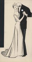 Pareja de bailarines Una pareja de bailarines aparece en primer término. El hombre va vestido con un traje en negro y blanco mientras que la bailarina, una joven rubia, lleva un vestido largo de color fucsia. Una escena en la que se aprecia el movimiento de la danza. El dibujo se encuentra enmarcado.Boceto realizado para la ilustración de la revista Novelas y Cuentos: Titulo: Autor: Nº publicado: Fecha Tomo NC/. No; Prueba de Imprenta 446