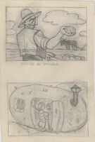 Pasos de la muerte Dos piernas de las que sólo se vislumbran unas botas amarillas y un trozo de pantalón rojo caminan dejando como huellas el símbolo de la muerte: representado por una calavera y dos huesos entrelazados en color negro. Toda la escena enmarcada parece acompañada por el boceto de la posible firma del artista.Boceto realizado para la ilustración de revista Novelas y Cuentos: Titulo: Autor: Nº public.: Fecha. Tomo NC. Prueba Imprenta: 103