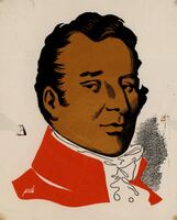 Retrato de un personaje desconocido En este retrato se representa el busto de un hombre de frente con la piel muy oscura y el pelo negro. En su ropaje destaca el rojo de la chaqueta y el blanco de la camisa. Su semblante es serio. En la composición se vislumbra la firma del pintor.Prueba de imprenta. Ilustración realizada para la revista semanal Novelas y Cuentos. Titulo: Autor: Nº publicado: Fecha: Tomo NC.