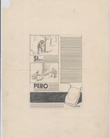 Si…Pero En esta composición se puede apreciar en la parte inferior la firma del pintor, en la esquina de la izquierda, como una franja horizontal, gruesa y de color negro sobre la que está dibujado un saco blanco. En al parte superior se ve un dibujo enmarcado bajo el lema “si” en el que un hombre descansa y debajo otro dibujo enmarcado con el lema “pero”. Predominan las líneas horizontales a la derecha, entre los dibujos y bajo la franja negra, como el color negro sobre un fondo blanco.