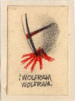 Wolfram, Wolfram Con el título de “Wolfram, Wolfram” este dibujo representa como una mano roja es herida por una pica que cae sin piedad sobre ella. La pica crea una ligera sombra en el dibujo en tonos grisáceos oscuros. Además, el dibujo está enmarcado.Boceto realizado para la ilustración de la revista semanal Novelas y Cuentos. Titulo: Wolfram.Wolfram. Autor: Nº publicado: Fecha: Tomo NC.