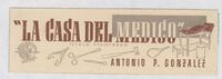 La casa del médico Con letras rojas y blancas el rótulo”La casa del médico”, rodeado de objetos e instrumental médico.