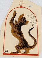 LA NIÑA DE LUZMELA. En este dibujo firmado se destaca un gato marrón con rayas negras que se encuentra de espalda intentando capturar a un pájaro blanco que consigue escapar, todo ello recogido en una jaula de color rojo.Prueba de imprenta. Ilustración realizada para la revista semanal Novelas y Cuentos. Titulo: La niña de Luzmela. Autor: Concha Espina. Nº publicado: 1176. Fecha: 22-11- 1953. Tomo NC.: 53.