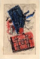 MAS ALLA DE DOVER De una forma no muy bien definida parece apreciarse el tronco de una figura masculina de perfil con un traje azul oscuro y una mano roja llevando en la mano un maletín rojo. El dibujo está enmarcado.Boceto realizado para la ilustración de la revista Novelas y Cuentos. Titulo: Más Allá de Dover. Autor: Val Gielgud. Nº public. 1052. Fecha: 15-07-1951. Tomo NC.: 29. PI/.482.