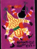La danza fantástica Sobre fondo morado, las figuras un tanto increíbles de dos personajes; uno de ellos de espaldas, y el otro, acaso más fantasmal, nos mira de frente. Vestidos con trajes coloristas, representado una danza que pensamos carnavalesca. En la parteinferior derecha se bosqueja para la leyenda del cartel.