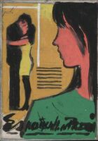 Una mujer observa una pareja que se besa En este cartel con el título abocetado, de ahí su difícil lectura, se puede ver en primer plano a una mujer con el pelo largo y negro, con una camiseta verde y girando su cabeza hacia atrás observando a una pareja que aparece en segundo plano abrazados y dándose un beso; ella con el traje amarillo y él con el traje negro. Por encima de sus figuras se vislumbra el posible boceto de la firma del pintor. El fondo del dibujo es amarillo oscuro y en el centro destacan algunas líneas rectas y negras en posición horizontal.