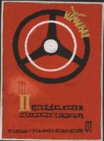 Volante Sobre un fondo rojo y en la parte superior se ve la imagen de un volante, negro y blanco, con una cinta amarilla atada a su mango. En la parte inferior se puede apreciar la presencia de algunas palabras en color negro pero de difícil lectura ya que son bocetos de un posible título.