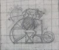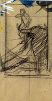 Boceto En esta composición de superficie cuadriculada y con el fondo grisáceo se representa la imagen de una escena de difícil definición ya que se trata de un boceto. También está presente el boceto de la firma del pintor. Predominan las líneas oscuras.