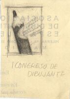Congreso de dibujante Sobre un fondo amarillento destaca en la parte superior de la derecha el dibujo de un lápiz roído metido en un enmarque pequeño. Destacan las líneas oscuras.