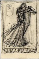 El baile En este boceto donde destacan los colores oscuros se puede apreciar la figura estilizada de un hombre y una mujer agarrados bailando. Dos figuras que se encuentran de perfil.