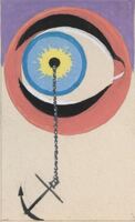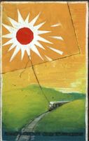 El ojo negro, el camino y el hombre verde En el dibujo enmarcado y sobre un fondo rojo surge en la parte superior un ojo negro del que nace un camino de superficie amarilla y blanca por el que pasea un hombre verde. Por encima del ojo se ve una inscripción en negro de imposible lectura por ser un boceto. Unas líneas horizontales surgen en la esquina inferior de la izquierda.