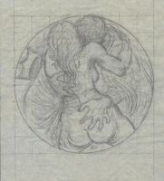 Abelardo y Floisa 4 Boceto de una de las caras de la medalla titulada Abelardo y Floisa donde se representa a los amantes haciendo el amor. Es de destacar la mano de él, en forma de una verdadera garra.