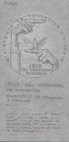 1970 Año Internacional de la Educación Dibujo a lápiz para concurso de medallas del Año Internacional de la Educación, donde se aprecia la silueta de unas manos con un pájaro entre sus dedos, enmarcado por un círculo y debajo se puede leer la leyenda: “Símbolo más menos de un profesor enseñando a volar a un pajarillo, expresando así de forma poéticas todo el esfuerzo, afición, y paciencia que ha de reunir los buenos educadores”.Boceto para medalla año 1970 "Año Internacional de Educación-Ministerio de Educación y Ciencia. NO REALIZADO