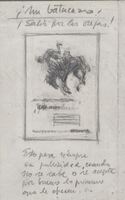 ¡Un batacazo!... Salir por las orejas Sobre un fondo gris se pueden leer en la parte superior a lápiz la siguiente frase: “¡un batacazo!...salir por las orejas” y en la parte inferior: “esto pasa siempre en publicidad, cuando no se sabe o se acepta por bueno lo primero que le ofrecen”. Entre ambas frases se ve el boceto enmarcado de un caballo que lanza por los aires a su jinete. En toda la composición destacan las líneas grises.