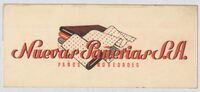 Nuevas Pañerías Cartel publicitario de Nuevas Pañerías, cuyas letras aparecen en rojo y negro en cuyo espacio central entre los dos rótulos aparece la imagen de un traje de chaqueta de un hombre y un vestido de mujer en rojo.