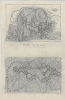 Platero y yo Boceto a lápiz del anverso y reverso de una medalla cuya temática es Platero y yo con la representación de la figura de un hombre maduro visto de frente y de espaldas montado sobre el lomo de un burro.boceto estudio sobre medalla para el tema Platero y Yo.Otros archivos relacionados: MBO/559-686. Sin otraqs referencias.