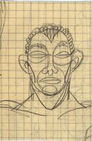 Retrato de personaje desconocido 3 En este retrato se ha representado a un hombre con cabellos blancos y la piel rojiza. De su vestimenta destacan el negro, el verde y el blanco. Se ha firmado el dibujo.Prueba de imprenta. Ilustración realizada para la revista semanal Novelas y Cuentos. Titulo: Autor: Nº publicado: Fecha: Tomo NC.: