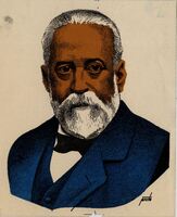 Retrato de personaje desconocido 2 Se ha retratado a un personaje desconocido en un posición frontal. Su piel es muy morena y destacan en su rostro el cabello y la barba blanca. Lleva un traje de chaqueta azul, una camisa blanca y una pajarita negra en el cuello. La firma del pintor está presente.Prueba de imprenta. Ilustración realizada para la revista semanal Novelas y Cuentos. Titulo: Autor: Nº publicado: Fecha: Tomo NC.: