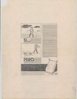 Si…Pero 2 En este cartel publicitario está presente la firma del pintor en la esquina de la izquierda de la parte inferior, en donde también se puede ver una franja horizontal, negra y gruesa sobre la que se ha dibujado un saco blanco. En la parte superior destaca el dibujo enmarcado de un hombre sembrando y en el segundo dibujo enmarcado un hombre desesperado por el desastre a causa de los insectos. Predominan las líneas horizontales a la derecha, entre los dibujos y bajo la franja negra inferior, como también el color negro sobre un fondo claro.
