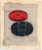 Alcantarilla abierta Una alcantarilla abierta deja vislumbrar una escalera verde en su interior negro. La tapa de la alcantarilla cercana a la apertura es de color rojo. Este es el tema central de este dibujo enmarcado.Boceto realizado para la ilustraci´0n de la revista Novelas y Cuentos.- Titulo: Autor: Nº publc.: Fecha::Tomo NC.: PI/.