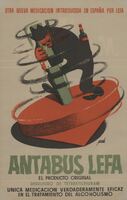 Antabus Lefa 2 Cartel publicitario de los laboratorios Lefa, con el anuncio de un medicamento para el mareo, representado por un hombre ebrio agarrado fuertemente al palo de una gran peonza que no para de dar vueltas.