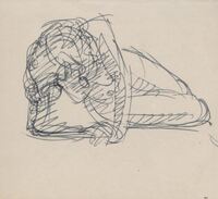 Boceto de mujer Un primer boceto de una mujer de frente con la cabeza boca abajo con parte la de su cuerpo semilevantado. A pasar de ser, evidentemente, un estudio más de desnudo en la escuela de dibujo, recuerda a la mítica escultura helenística del Soldado herido.