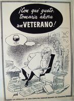 Boceto de un cartel de Veterano Boceto a lápiz de cartel de Veterano, con la imagen de un sabio matemático sentado en un sofá descansando rodeado por del desorden de libros y planos dentro de su orden, con una pizarra al fondo con apuntes de sus estudios, de su cabeza sale un bocadillo que refleja el deseo de beberse una copa de Veterano.