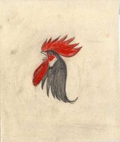 Cabeza de gallo                Sobre un fondo claro y en el centro se ve dibujada la cabeza de un gallo gris con su cresta y barba roja.