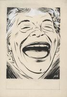Carcajada de mujer Dibujo a lápiz negro con toques en blanco, de un primerísimo plano de la cara de una mujer madura, con la boca abierta y expresión de carcajada. El resultado final tiene –quizá buscado por el artista- algo de soez.