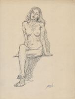 Desnudo de mujer de frente sentada Apunte de un desnudo de mujer, vista de frente sentada con las piernas cruzadas e inclinándose un poco hacia detrás debido a la posición de sus manos. El dibujo nos resulta de alguna manera más explícito, acaso por la personificación más concreta del rostro de la modelo en este caso.