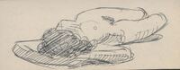 Descansando Ocupando verticalmente el espacio observamos el apunte de un desnudo de mujer, boca arriba con los brazos bajo su cabeza en primer término. Este tipo de dibujos con escorzos complicados, siempre están destinados a realzar la intimidad y sensualidad del pequeño apunte.