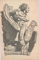 El ángel y el águila En esta composición se ven las figuras escultóricas de un ángel con el cuerpo ladeado y acompañado por un águila. El dibujo está realizado con líneas de color gris.