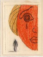 El alma enamorada. Una cara de mujer (media cara) dibujada con trazos muy personales el ojo derecho esta dibujado en forma de una espiral, del ojo cae una lagrima, la cara pintada en amarillo, rojo y negro. Al fondo por la parte inferior se observa la figura de un hombre marchando de espaldas, en actitud deprimida. La firma en el margen inferior izquierdo.Prueba de imprenta. Ilustración realizada para la revista semanal de Novelas y Cuentos. Titulo: El Alma Enamorada / Ernesto Maltraneos . Autor: E. Bullwer Lytton. Nº publicado: 1204. Fecha: 06-06-1954.Tomo:40