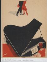 El bailarín mundano En el dibujo, firmado y enmarcado por la parte inferior, se puede ver un piano de cola negro y con la tapa abierta mientras una mujer interpreta una música. En segundo plano se vislumbra una pareja, de la que solamente se ven sus extremidades inferiores, bailando. Ella va de rojo y él de traje negro.Prueba de Imprenta, ilustración realizada para la revista semanal Novelas y Cuentos. Titulo: El bailarin mundano. Autor: Paul Bouget. Nº publicado: 848. Fecha: 10-08-1947. Tomo NC.: 5.