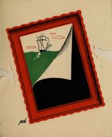 EL CABALLERO DE ERLAIZ. En el dibujo firmado se representa un cuadro torcido sobre una pared. El cuadro tiene un marco rojo y en su lienzo se ve pintado un barco que surca las aguas verdes del mar. En el mismo lienzo destaca el color negro.Prueba de imprenta. Ilustración realizada para la revista semanal Novelas y Cuentos. Titulo: El caballero de Erlaiz. Autor: Pio Baroja. Nº publicado: 1104. Fecha: 06-07- 1952. Tomo NC. 30.