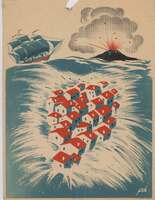 El barco, la población y el volcán En este dibujo, en el que está presente la firma del pintor, se ha dibujado en la parte superior un barco navegando las aguas azules del mar y también, hacia el lado izquierdo, un volcán en erupción causando una gran humareda. En medio de las aguas surge la imagen de una población de casas blancas con tejados rojos.Prueba de imprenta. Ilustración realizada para la revista semanal Novelas y Cuentos. Titulo: Autor: Nº publicado: Fecha: Tomo NC.: