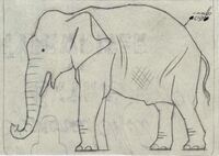El elefante Sobre un fondo gris se ha dibujado a un gran elefante de perfil, también gris. Se puede apreciar la firma del autor en la parte superior de la izquierda, en una esquina.