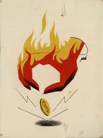 EL TUTOR En el centro de esta composición firmada se encuentra la imagen de una mano roja ardiendo dejándose ver las llamas amarillas en su parte superior mientras deja caer una moneda dorada.Prueba de imprenta. Ilustración realizada para la revista semanal Novelas y Cuentos. Titulo: El tutor. Autor: Eugenia Marlitt. Nº publicado: 1171. Fecha: 18-10-1953. Tomo NC.: 33.